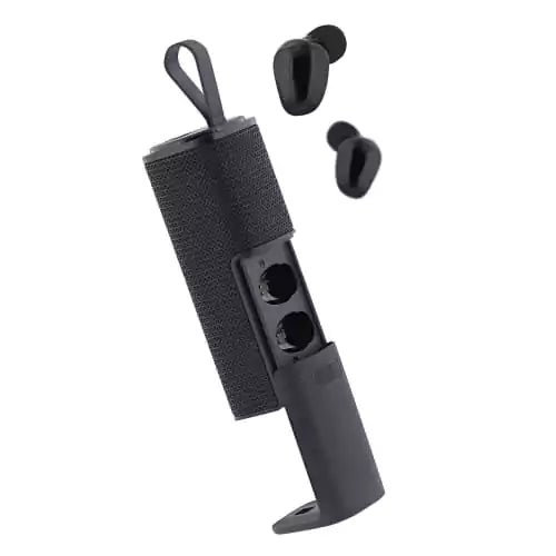 Seamlessly switch between speaker and earbuds—just take the earbuds out to listen privately, pop them back in to share the music.