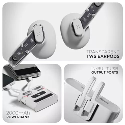 - Wireless TWS Earbuds with 2000mah Powerbank – Clearpods are Transparent TWS earbuds that has a 2000mah powerbank with 2 in-built USB Cables to cahrge your devices